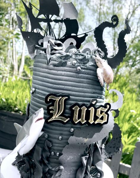 This pirate-themed name charm cake topper adds excitement, adventure, and personality to your cake. Perfect for little buccaneers, it creates a memorable centerpiece and looks amazing in photos.