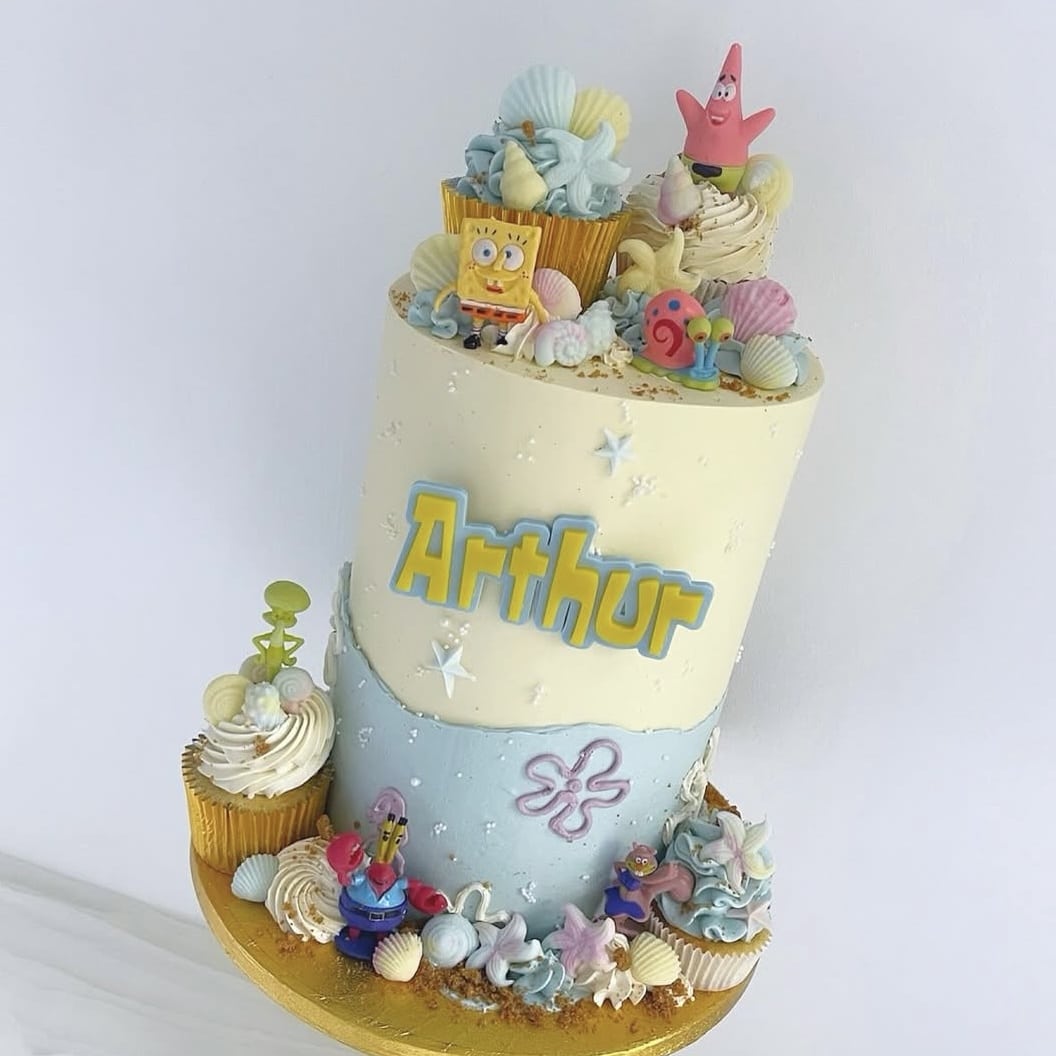 This SpongeBob-inspired name cake charm topper brings a burst of colour, fun, and ocean vibes to your cake. Perfect for little fans of silly, bubbly, underwater themes—it creates a memorable centerpiece and looks fantastic in party photos.