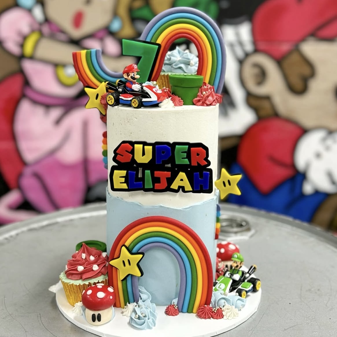 Each topper is custom made with your chosen name and age, making it a unique keepsake for your special day. Crafted from premium acrylic it’s durable, lightweight, and designed to complement a Mario-themed party