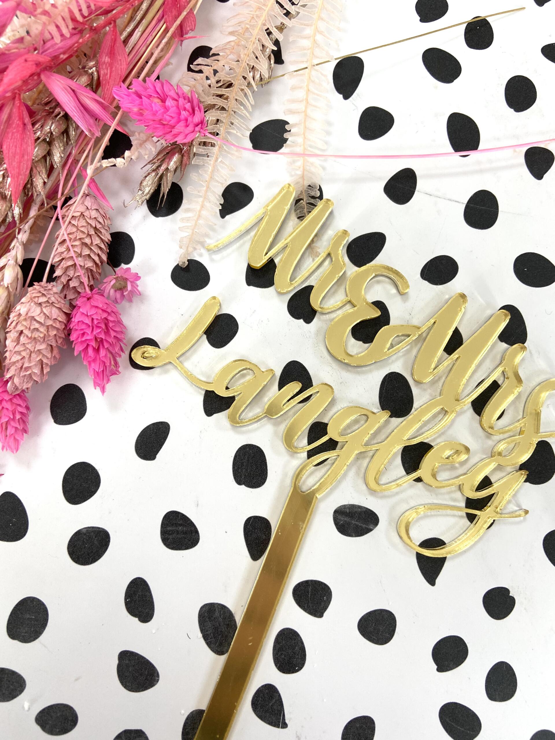 You will love this Mr and Mrs Topper , perfect for putting on any special event cake. Personalise your message on this cake topper to make it truly special.