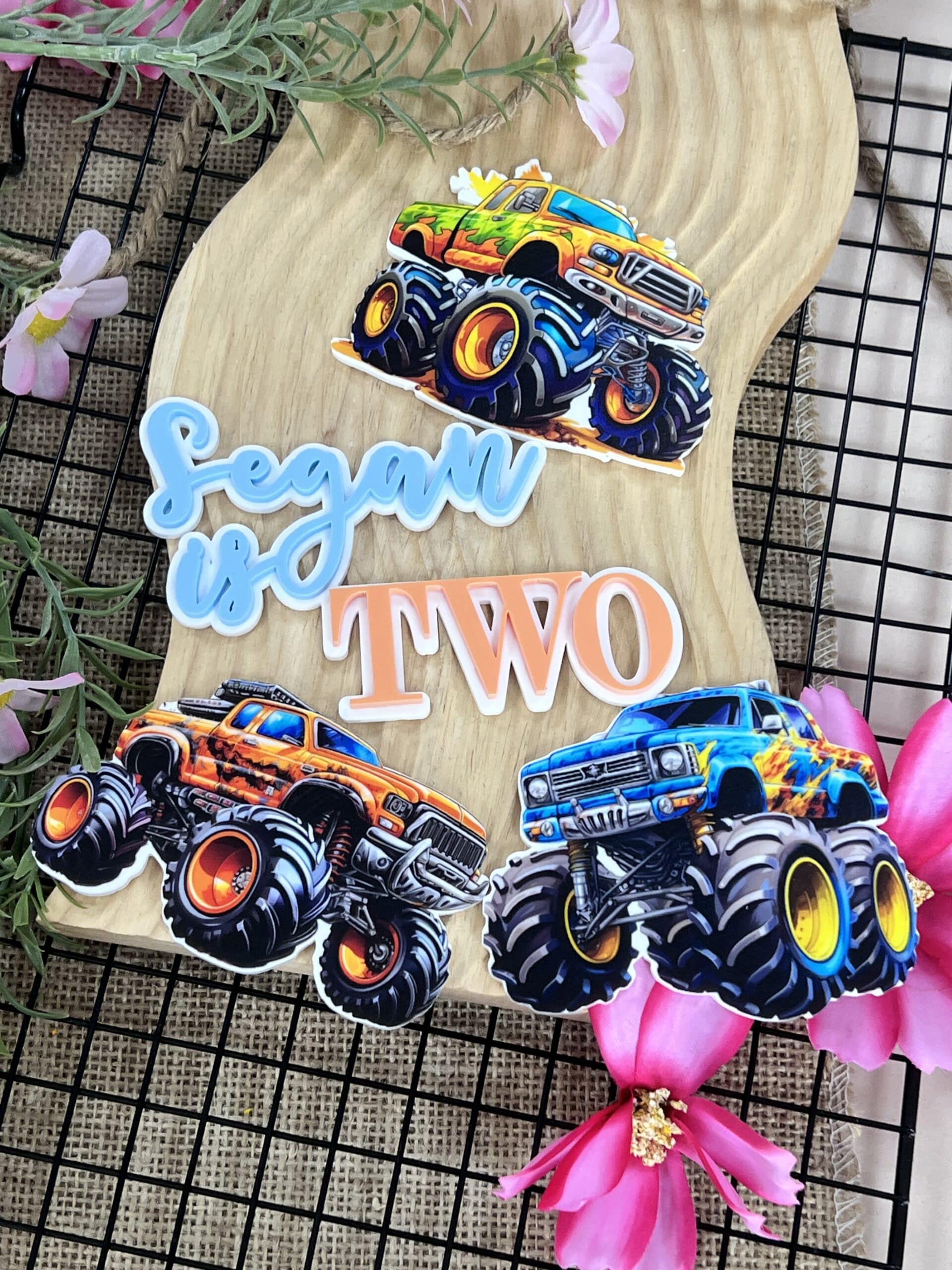 Monster Truck Toppers are perfect for your Monster Truck themed birthday cake goes perfectly with one of our double and Single layer Charms